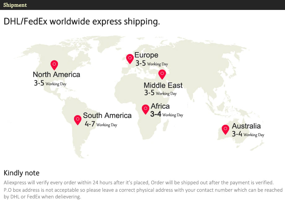 Shipping Time: 3-5 Days worldwide Free Shipping.